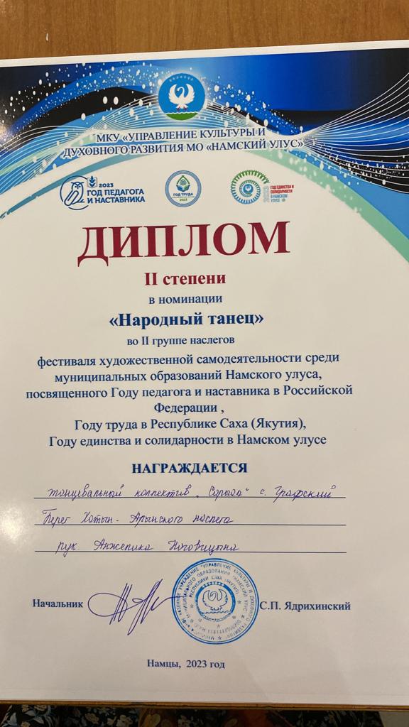 Муус устар 12 кунугэр 2023с. Нам улууьугар нэьилиэктэр икки ардыларыгар ыытыллыбыт уус-уран самодеятельноьын фестивалыгар Граф Биэрэгин дьоно-сэргэтэ кыттаммыт на5араадаланныбыт: