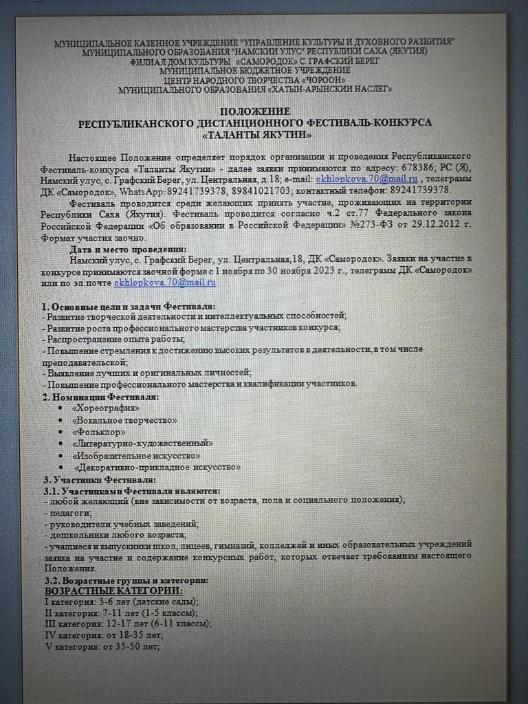 Республиканский дистанционный фестиваль-конкурс «ТАЛАНТЫ ЯКУТИИ»