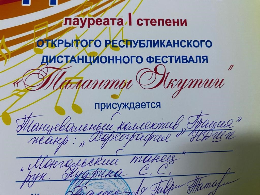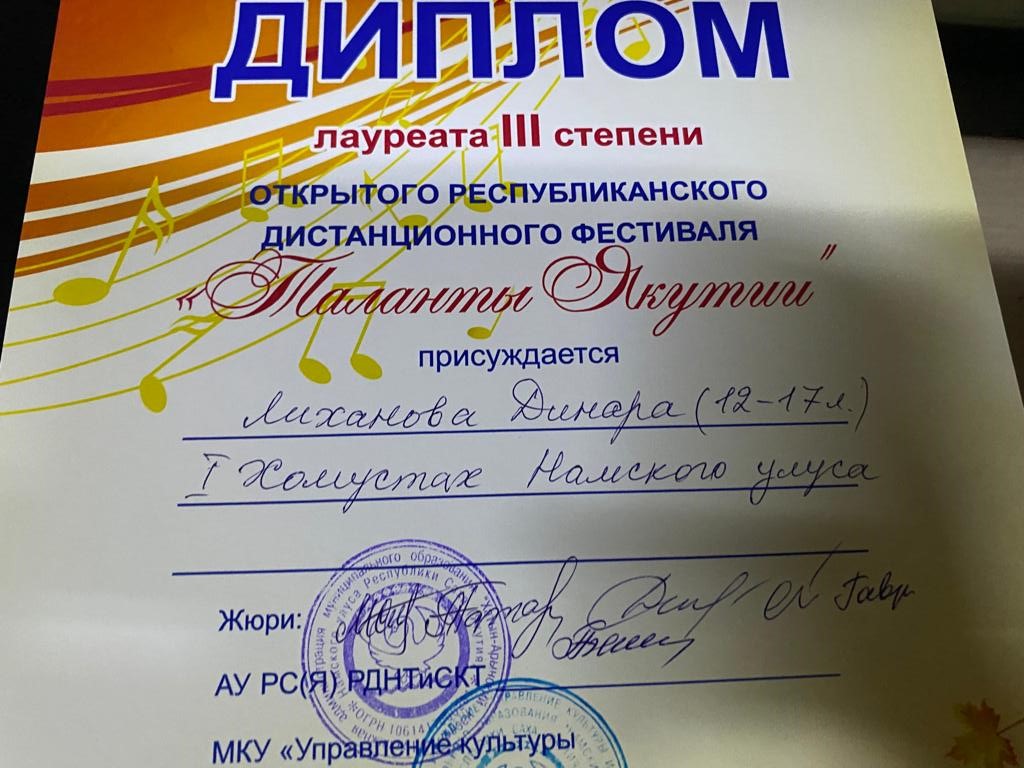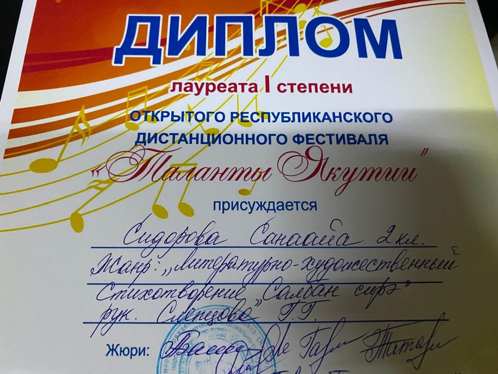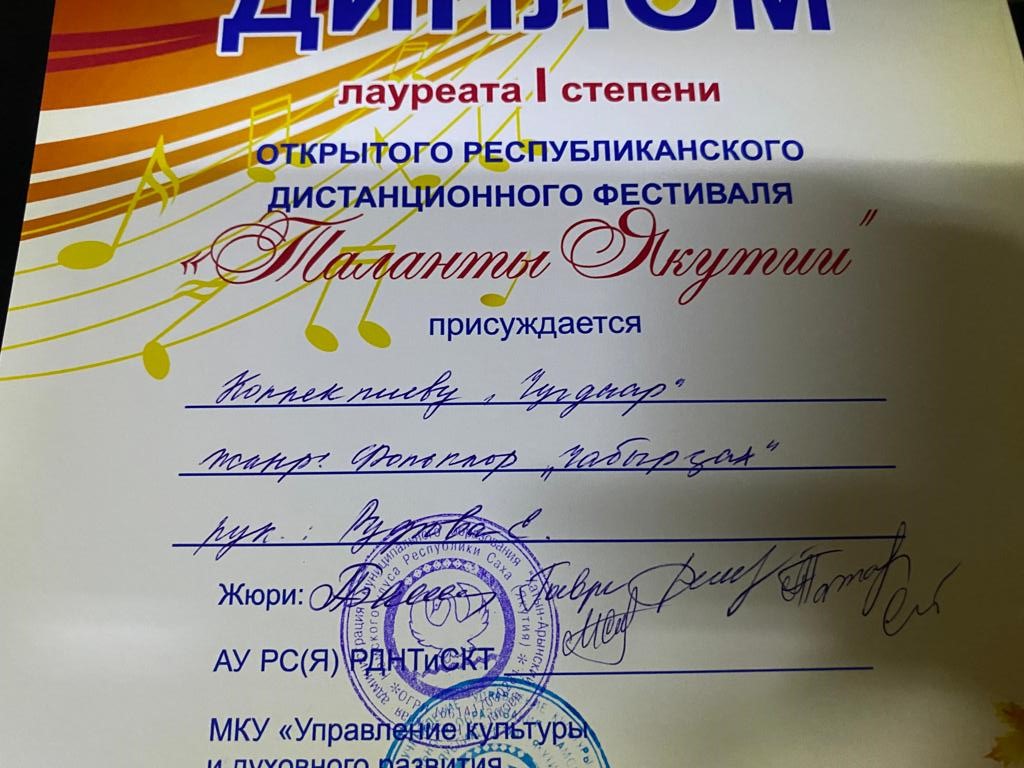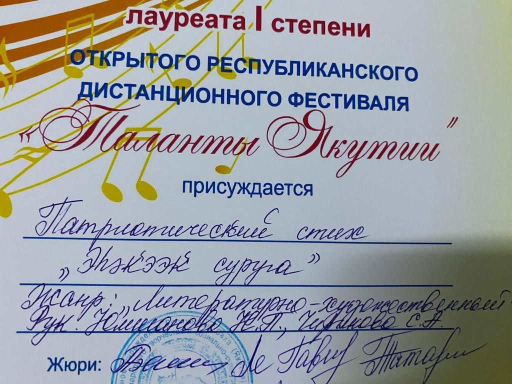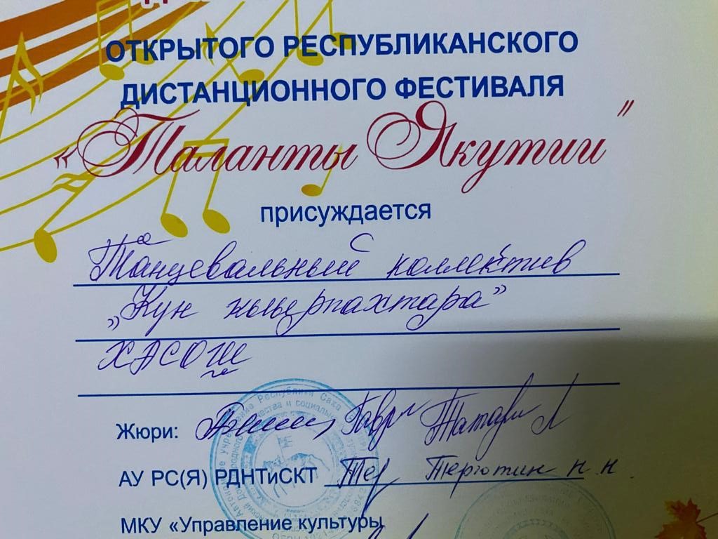 Сэтинньи 24 кунугэр «Таланты Якутии»Республиканскай курэхпит урдук таьымна ааста👍👏👏👏кыттааччыларга, тэрийээччилэргэ , дьууллуур субэгэ ис сурэхтэн махталбытын тириэрдэбит 👍👏👏👏💐💐💐✊😘😘😘 🎙️🎤🎵🎼 Бу курдук тумсуулээх, сурэхтээх буоллахпытына тугу барытын кыайабыт 👍👏😄😘🎼🎙️🎤🎵 дьонно элбэх уерууну-кетууну биэрэр культура дьоно буолабыт 💎😄😄😄☀️🌈