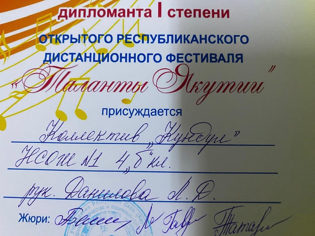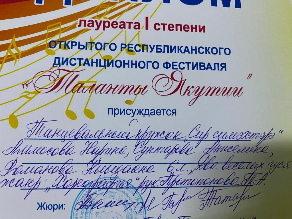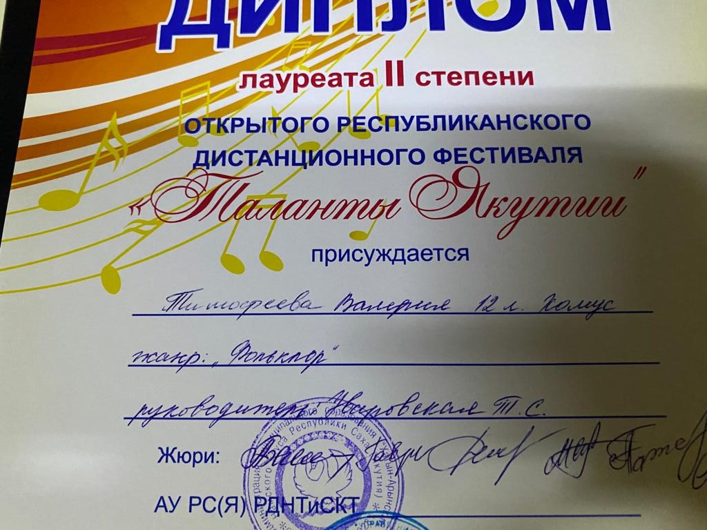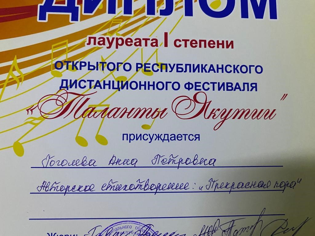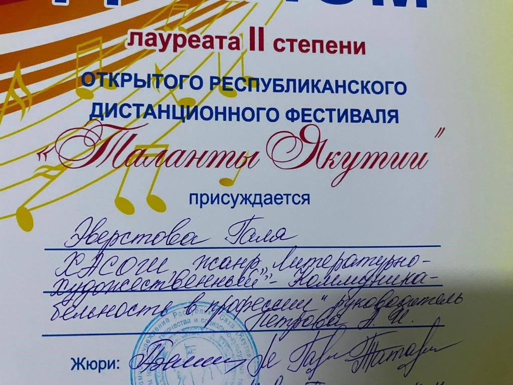 Сэтинньи 24 кунугэр «Таланты Якутии»Республиканскай курэхпит урдук таьымна ааста👍👏👏👏кыттааччыларга, тэрийээччилэргэ , дьууллуур субэгэ ис сурэхтэн махталбытын тириэрдэбит 👍👏👏👏💐💐💐✊😘😘😘 🎙️🎤🎵🎼 Бу курдук тумсуулээх, сурэхтээх буоллахпытына тугу барытын кыайабыт 👍👏😄😘🎼🎙️🎤🎵 дьонно элбэх уерууну-кетууну биэрэр культура дьоно буолабыт 💎😄😄😄☀️🌈