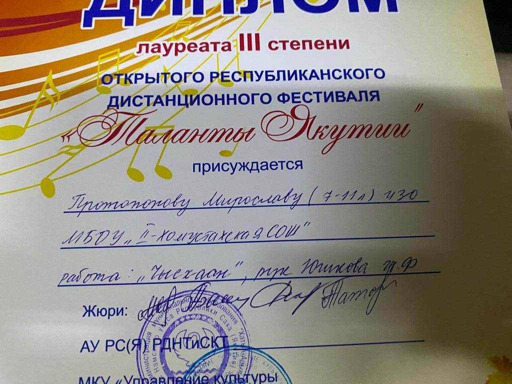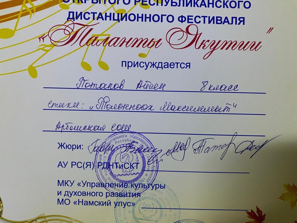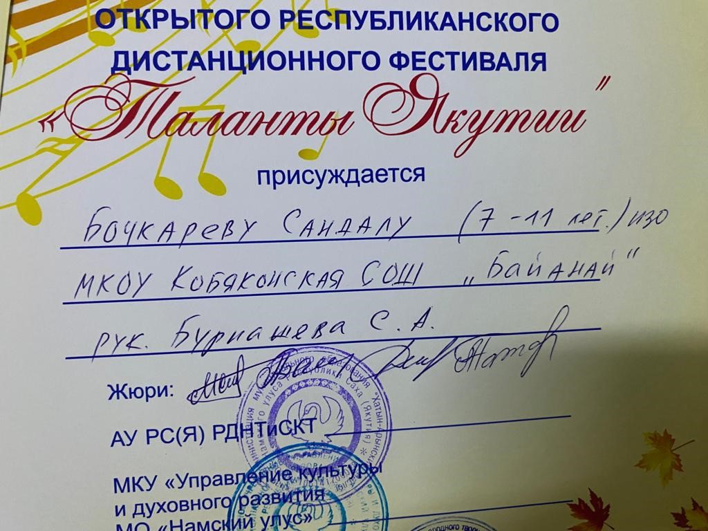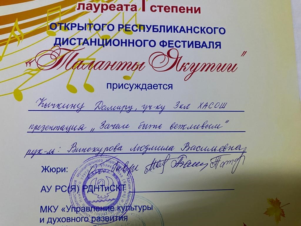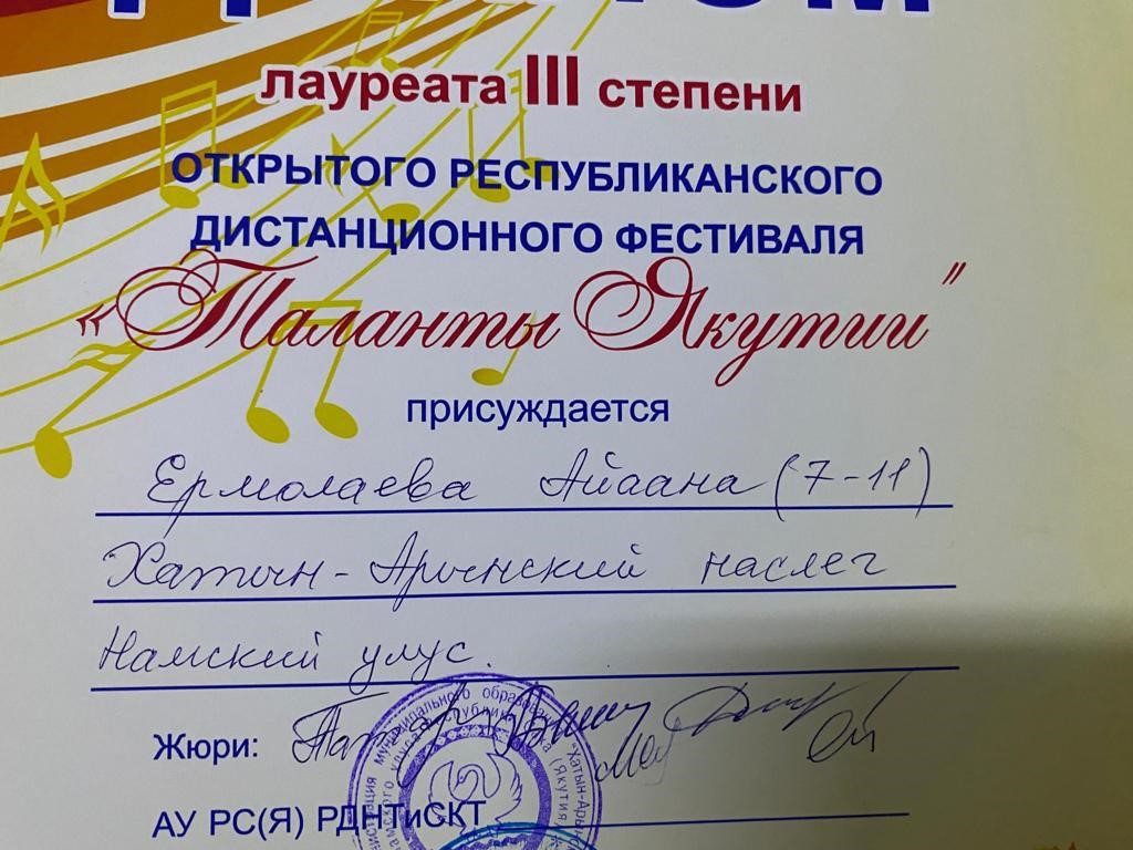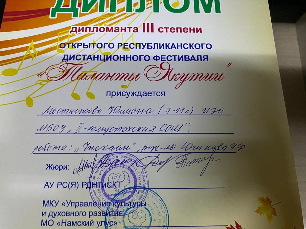 Сэтинньи 24 кунугэр «Таланты Якутии»Республиканскай курэхпит урдук таьымна ааста👍👏👏👏кыттааччыларга, тэрийээччилэргэ , дьууллуур субэгэ ис сурэхтэн махталбытын тириэрдэбит 👍👏👏👏💐💐💐✊😘😘😘 🎙️🎤🎵🎼 Бу курдук тумсуулээх, сурэхтээх буоллахпытына тугу барытын кыайабыт 👍👏😄😘🎼🎙️🎤🎵 дьонно элбэх уерууну-кетууну биэрэр культура дьоно буолабыт 💎😄😄😄☀️🌈